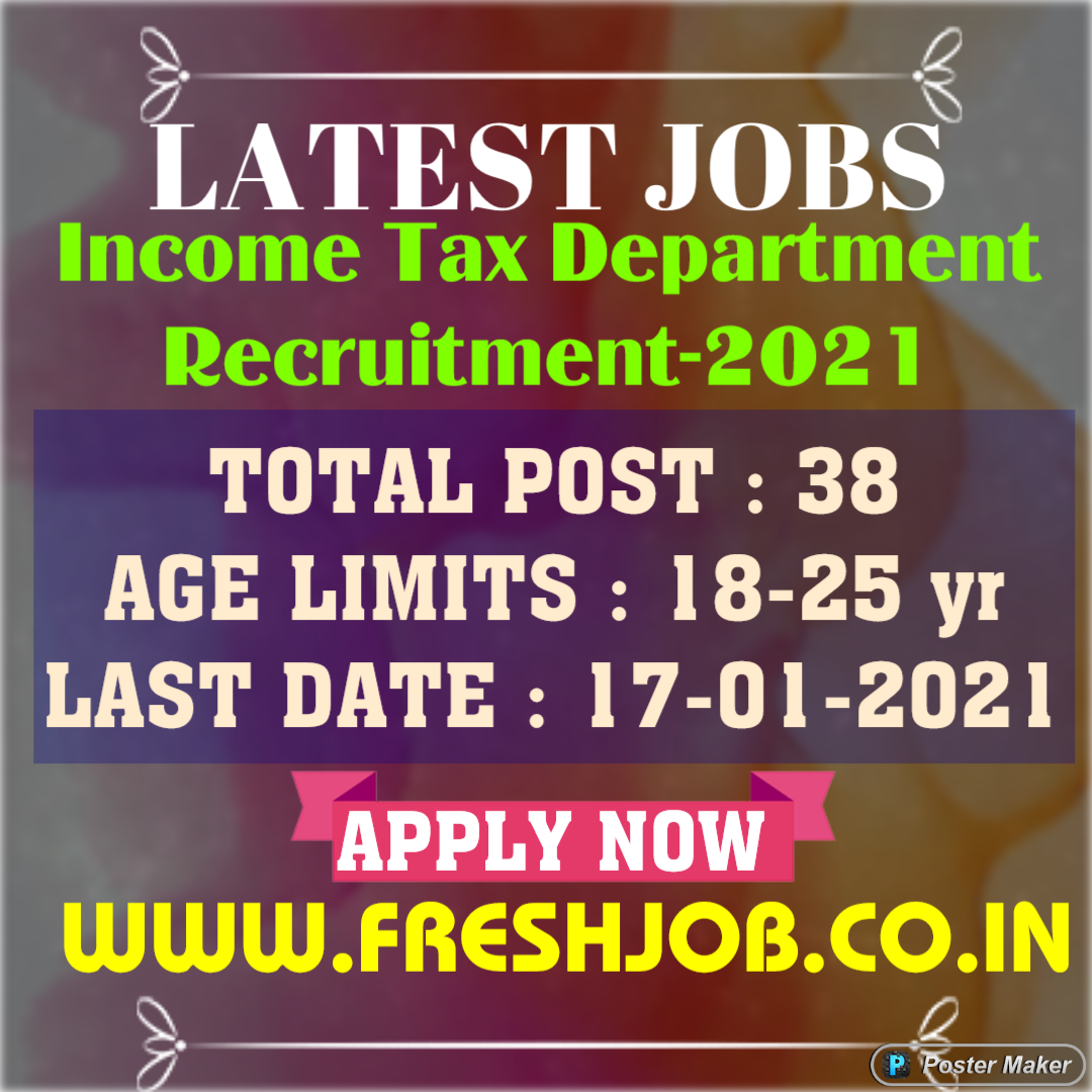 Income Tax Department 38 post Recruitment-2021: Jobs in Income Tax Department